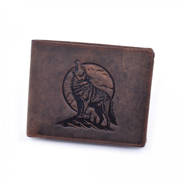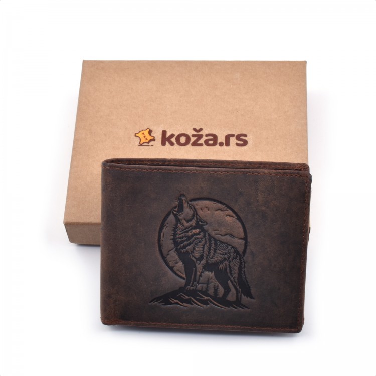 Oznake: braon novčanik, novčanik sa motivom vuka, muški novčanik, lovački kožni novčanik, vuk, vuk i planina, braon lovački kožni novčanik