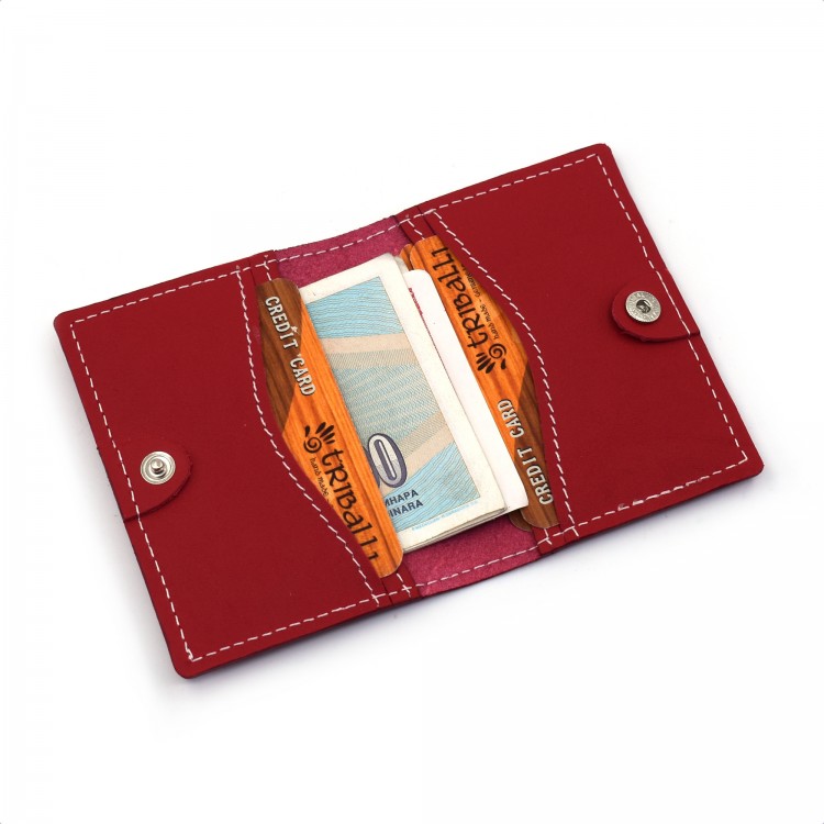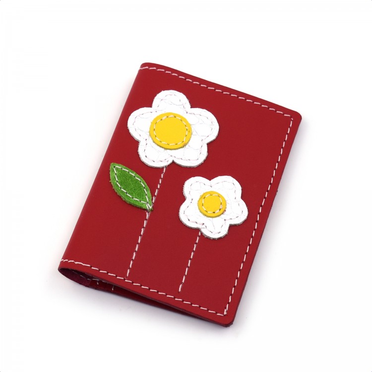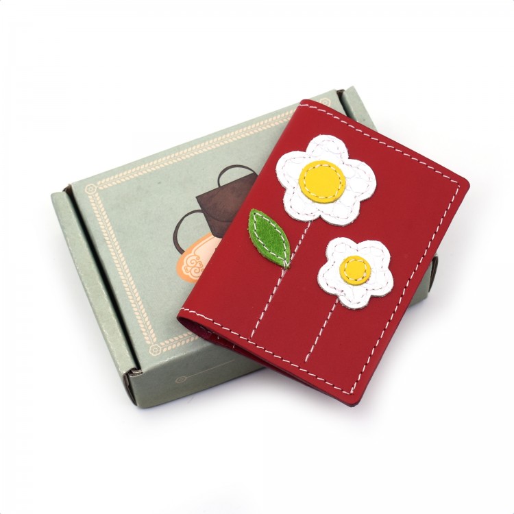 Crvena kožna futrola za kreditne kartice sa motivom cveća