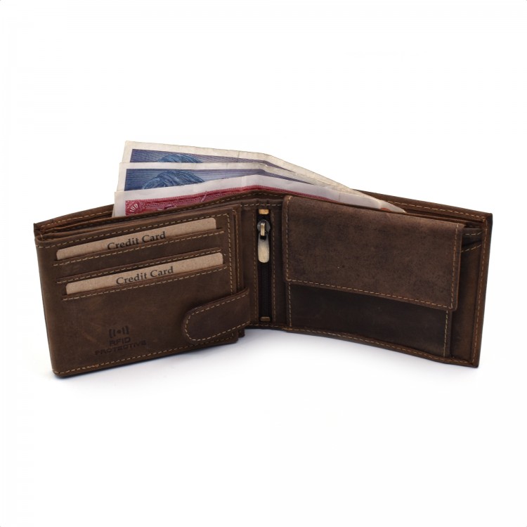 - 2 skrivena duboka dela koja se po sredini novčanika zatvaraju cipzarom