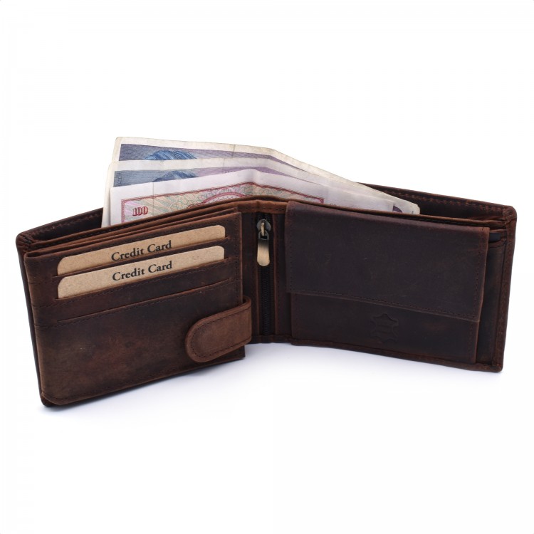 - 2 skrivena duboka dela koja se po sredini novčanika zatvaraju cipzarom