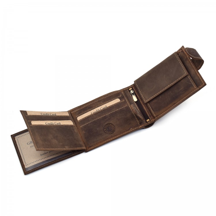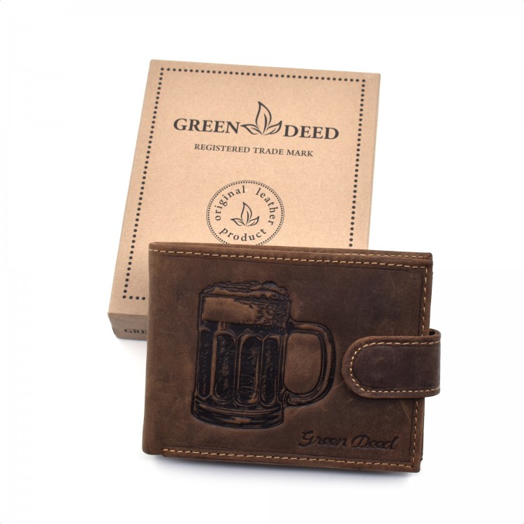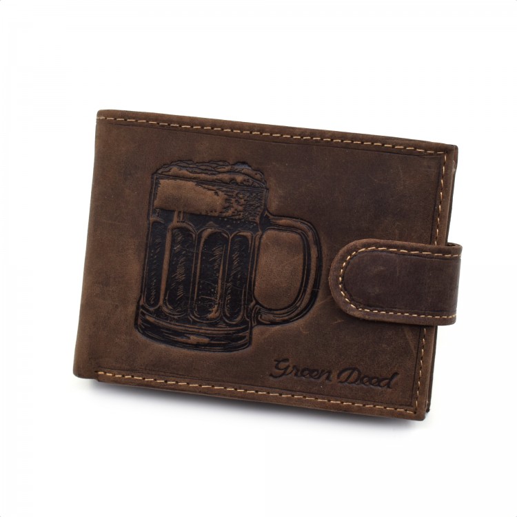 Muški novčanik sa motivom piva sa kopčanjem je izrađen od brušene goveđe kože.