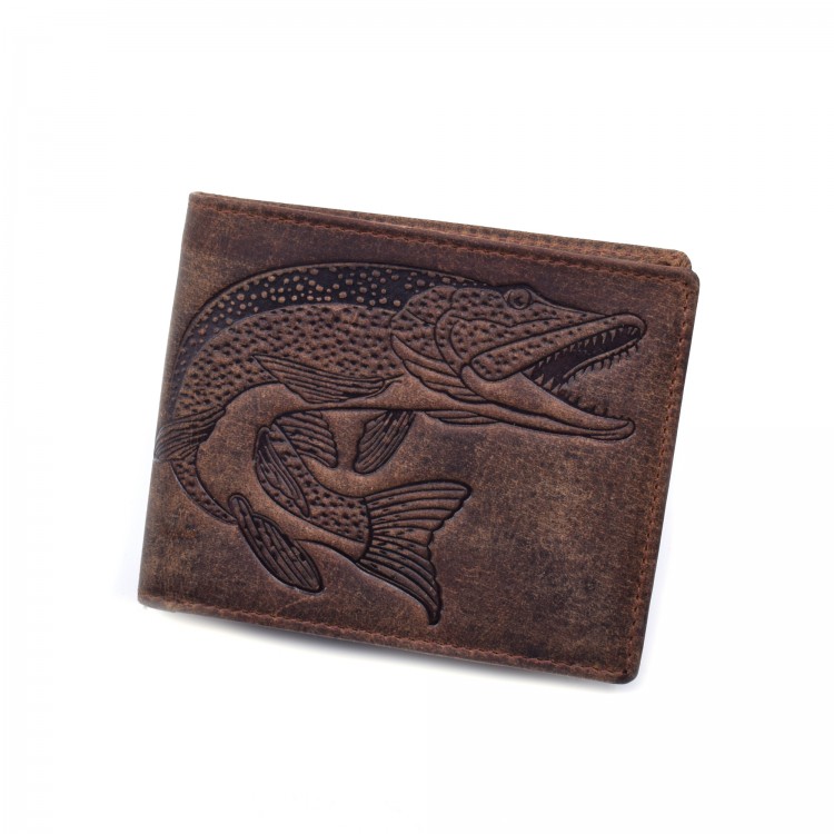 Oznake: braon novčanik, novčanik sa motivom štuke, muški kožni novčanik, ribolovački kožni novčanik, štuka
