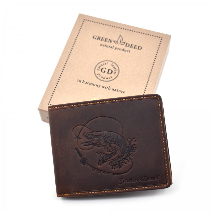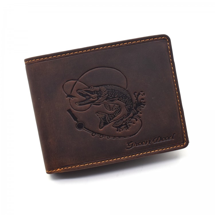 Oznake: braon novčanik, novčanik sa motivom štuke, muški novčanik, ribolovački kožni novčanik, ribolov, štuka