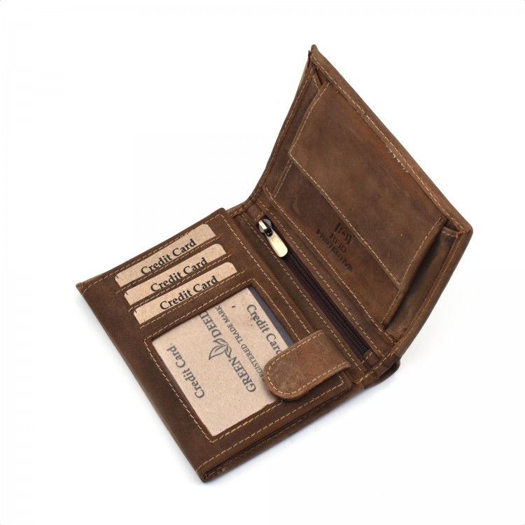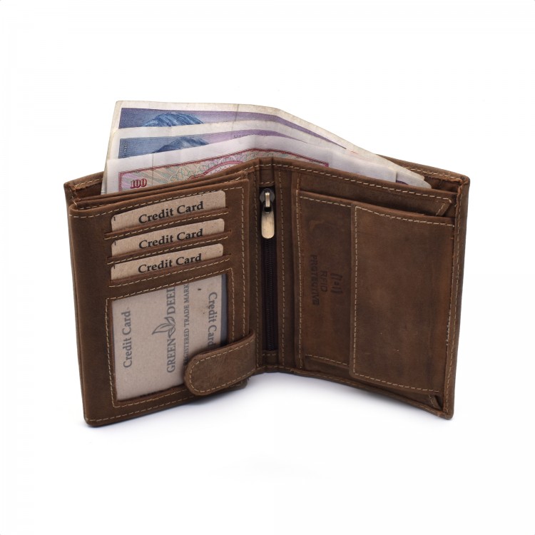 Klasičan muški novčanik je izrađen od brušene goveđe kože.