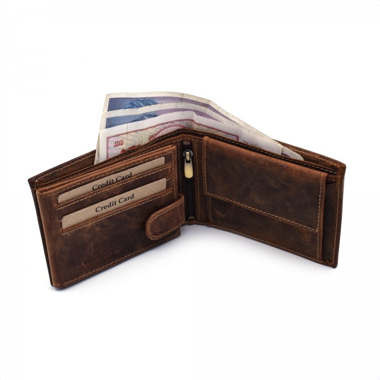 - 2 skrivena duboka dela koja se po sredini novčanika zatvaraju cipzarom