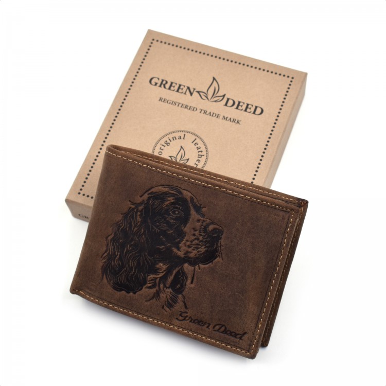 Oznake: braon novčanik, novčanik sa motivom pasa, novčanik sa motivom kokel španijela, muški novčanik, braon muški novčanik, kokel španijel