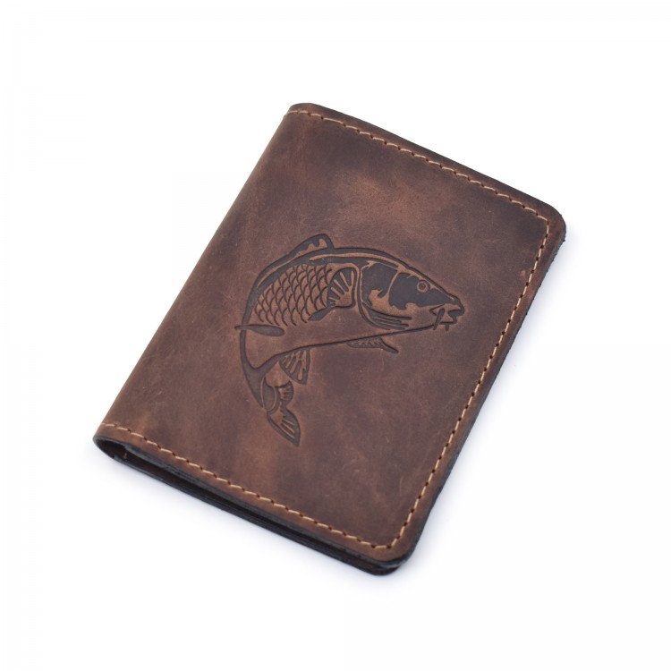 Oznake: braon novčanik, kožni novčanik, futrola za kartice, braon futrola za kartice, šaran, motiv šaran