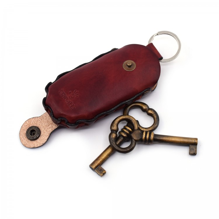 Etui za ključeve Sima je rađen ručno od goveđeg vrata. Svaki deo je ofarban ručno kesten braon transparetnom bojom za kožu i ceo etui je sastavljen ručnim pletenjem. Ključevi se uvlače u futrolu, tako da su ostali predmeti u džepu ili tašni zaštićeni od grebanja, a kaišić koji drži ključeve može poslužiti i da se futrola leti nosi okačena na opasaču.