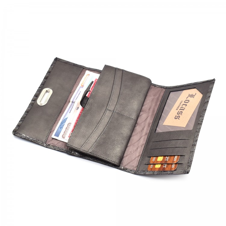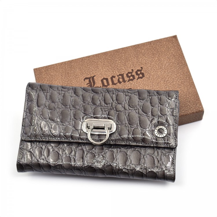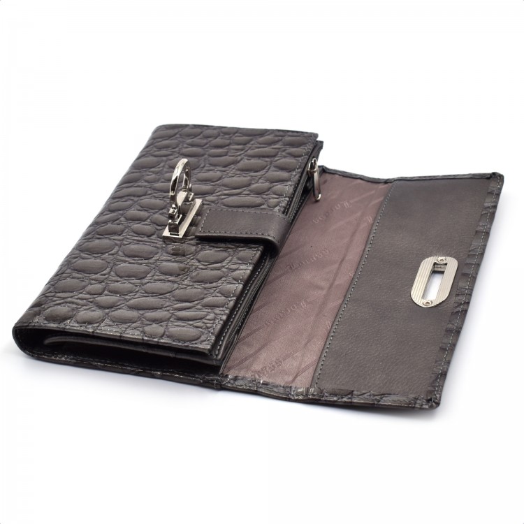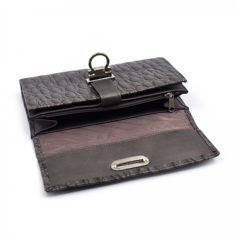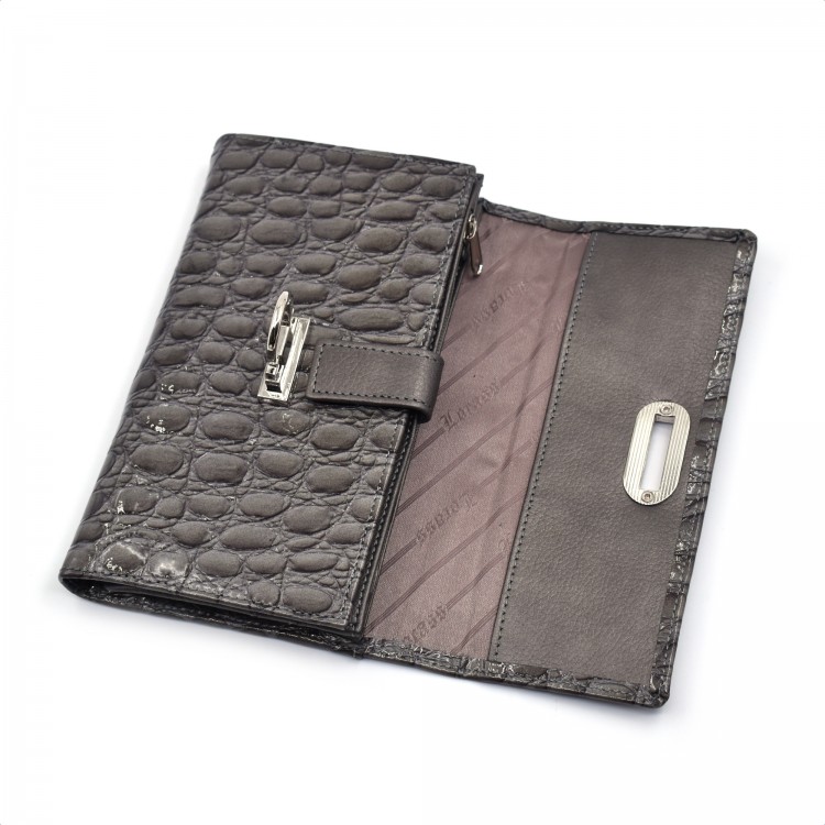 Veliki kroko sivi ženski kožni novčanik - Model 166K